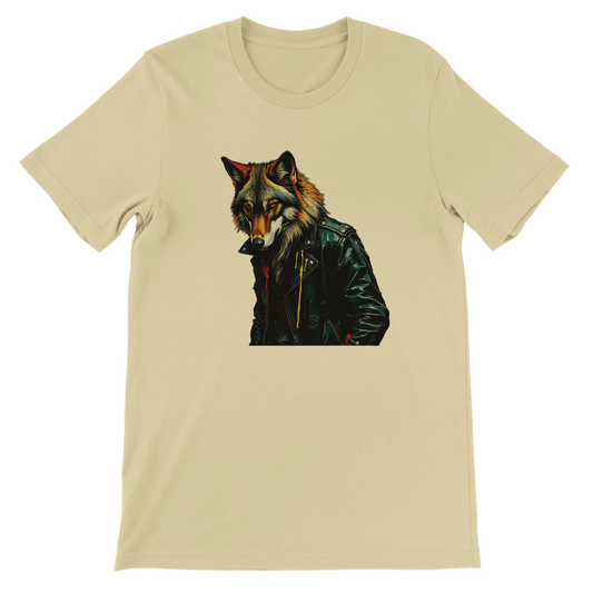 Premium Wolf Graphic T-Shirt - Unisex Design with Leather Jacket Print